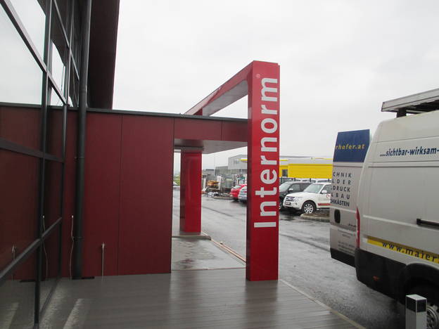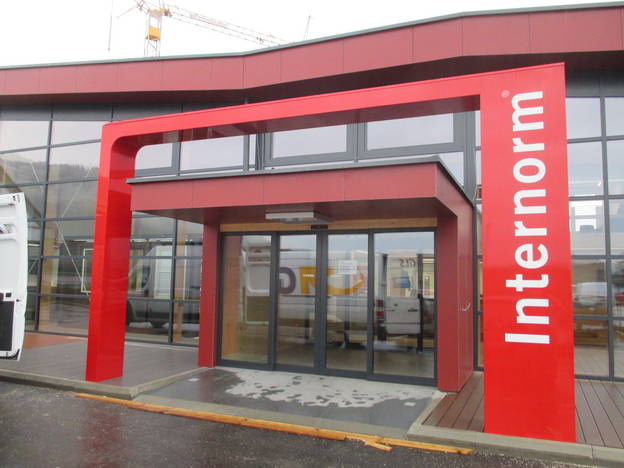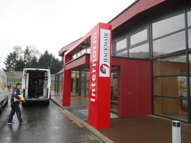 Maierhofer Lichtwerbung realisiert hier ein freistehendes Eingangsportal für den Internorm Händler Hackmair in Pinsdorf. Der markante Torbogen mit dem Maßen: 6000 x 3600 x 500 mm verleiht dem gesamten Eingangsbereich sofort ein frisches Design.